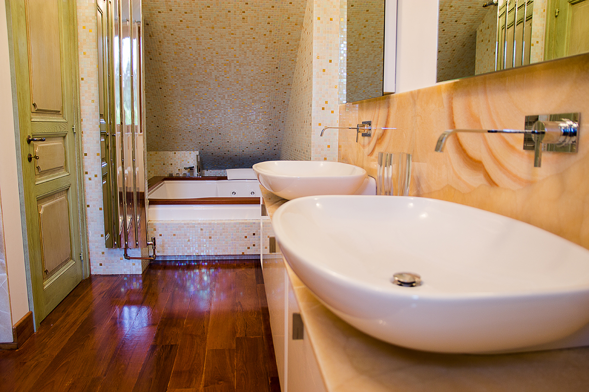 Le due camere “Le Rose”, di 28 mq nell’insieme, si trovano nella parte ristrutturata della villa a piano terra. Esse sono comunicanti e predisposte per accogliere una famiglia di 2/4 persone. Il lussuoso bagno in comune, rivestito di lastre intere di marmo, dispone di una vasca Jacuzzi a due posti, un’ampia doccia idromassaggio e doppio lavandino. Il gazebo si affaccia sulla piscina e un cespuglio di bellissime rose rosse gli fa da cornice.